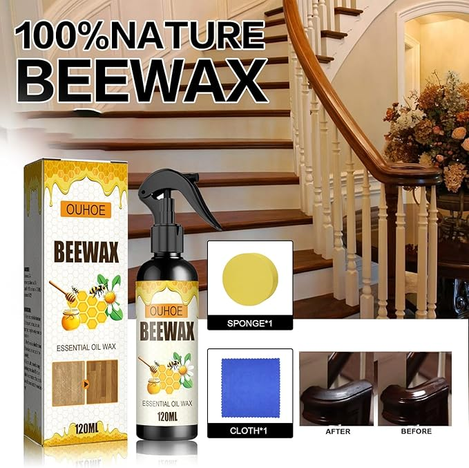 Sale ending in✨Our 2026 new natural beeswax care spray does not make the surface slippery, is non-toxic and odorless and is safe for pets and children. Can be applied to log furniture, wooden crafts, wood products (bamboo).